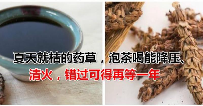 在《神農本草經》內記載:夏枯草,又叫夕句、燕麵、麥穗夏枯草、羊腸菜等,是一種中藥材。生長在山溝水濕地或河岸兩旁濕草叢、荒地、路旁,廣泛分布於中國各地。夏枯草具有清肝明目,散瘀消瘤的作用。民間又用它來泡茶,作清涼解暑劑。夏枯草為清肝火,散鬱結的要藥。