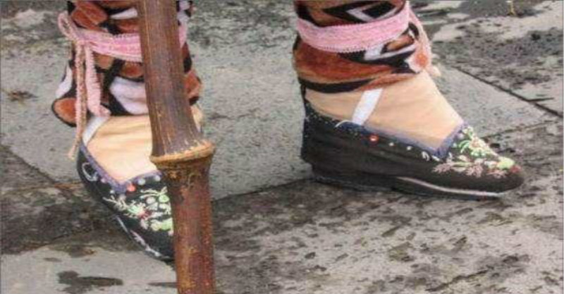 纏足是中國古代「男尊女卑」傳統習俗裏最畸形的陋習,女性從小用布將雙腳緊緊纏裹,使其腳畸形變小,以為美觀。