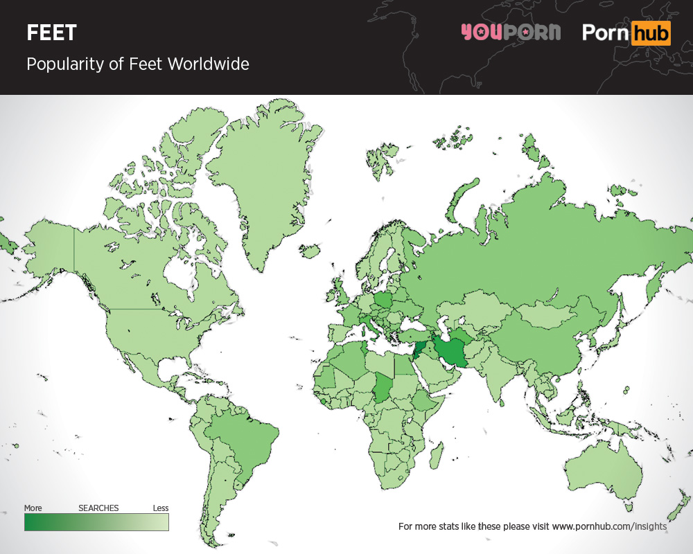接下來是一些比較冷門的排名這是腳,喜愛腳的地區是中東,台灣全球排名58…看來台灣人好像對腿跟腳比較感興趣呢,這該不會也是保守的一種吧?